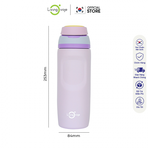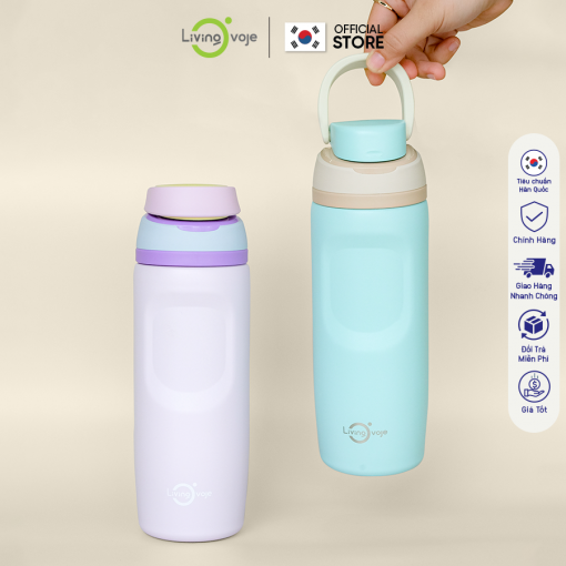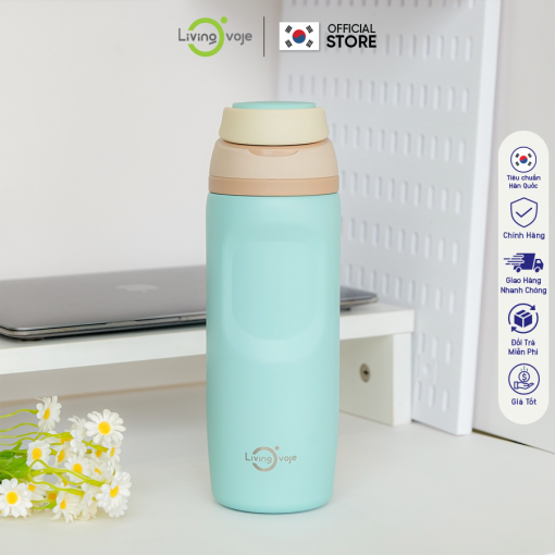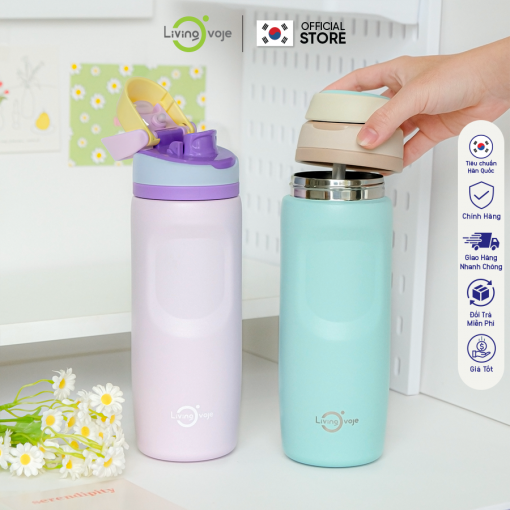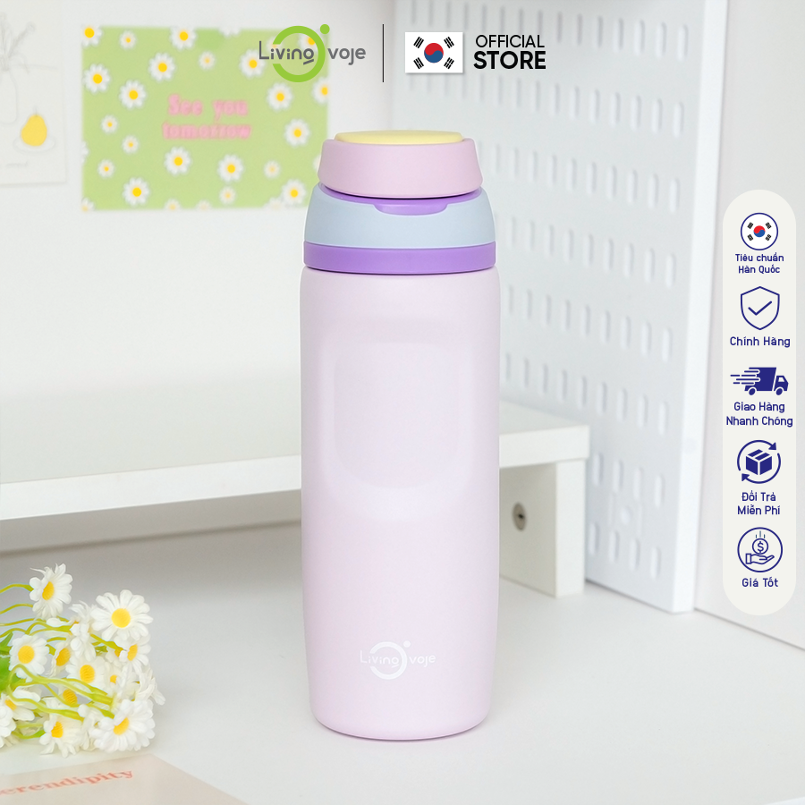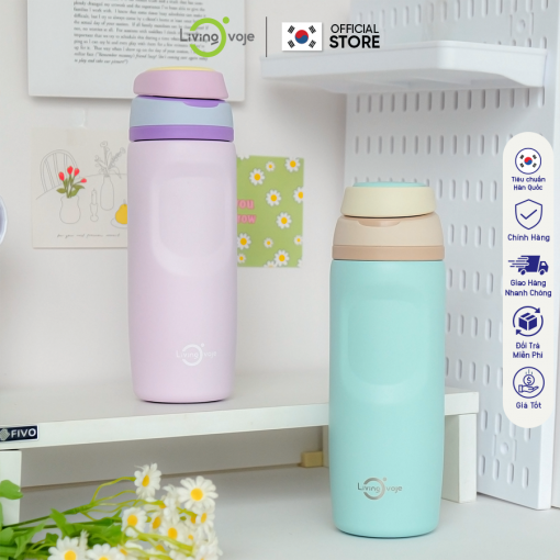 Bình Giữ Nhiệt LivingOn Nắp Bật Tiện Lợi, Dung Tích 480ml Giữ Nhiệt Tốt Thiết Kế Màu Pastel Hàn Quốc