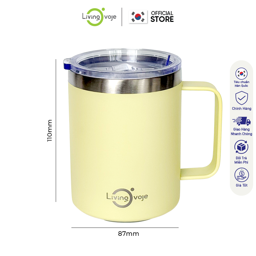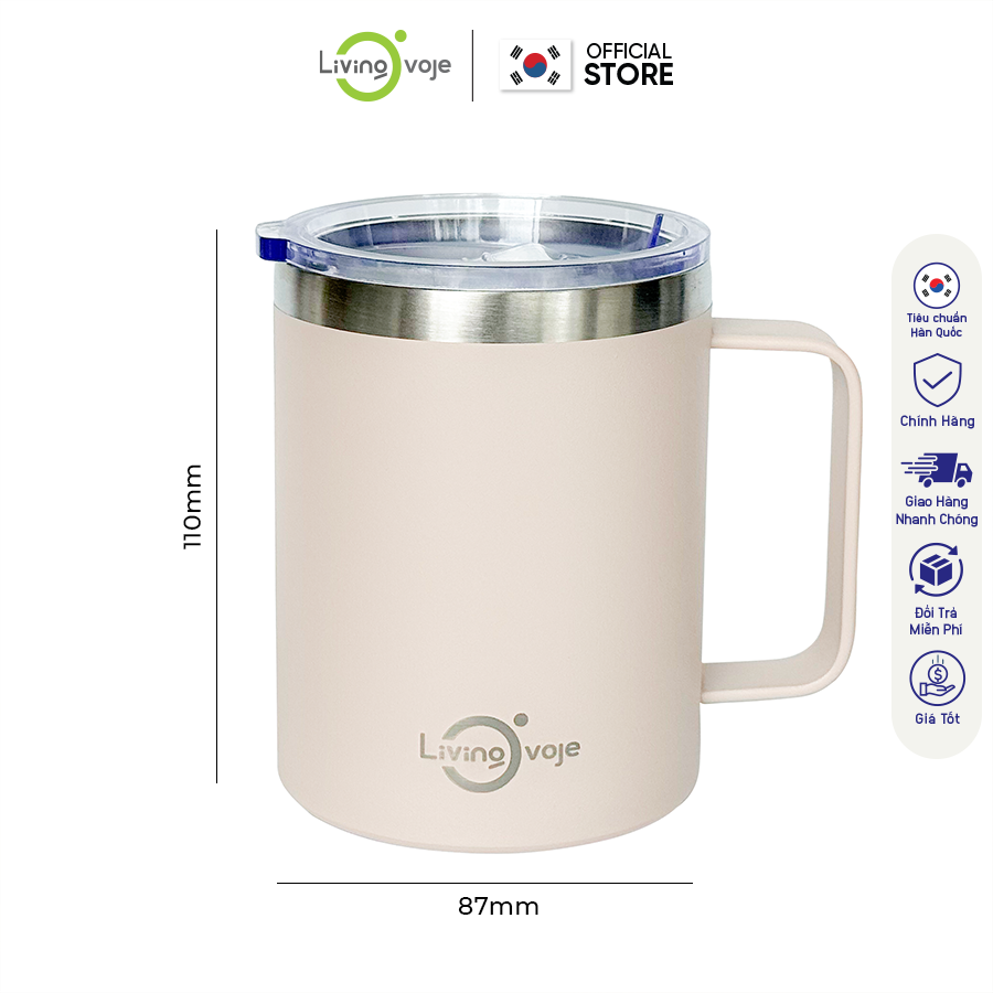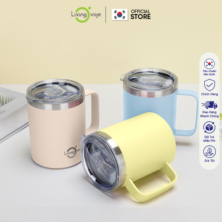 Cốc Giữ Nhiệt Living Ovoje 360ml – Inox SUS304, Giữ Nóng 8h Giữ Lạnh 12h – Ly Giữ Nhiệt Có Quai Tiện Lợi
